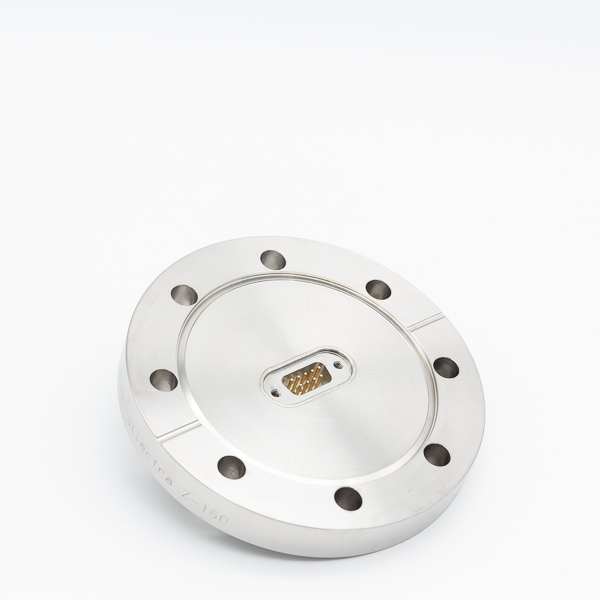 DN63CF Flansch mit 1 x 9 Pin Sub-D Durchführungen, Flanschmaterial 316L, Flanschdicke 15mm, max. 230°C
