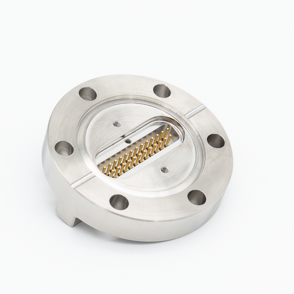 Sub-D Durchführung 25 Pin auf DN40CF Flansch, Sonderstecker auf Vakuumseite erforderlich (211-FS25-UHV-S oder 211-FS25-PK-S), minimaler Rohr Innendruchmesser 37mm, max. 230°C