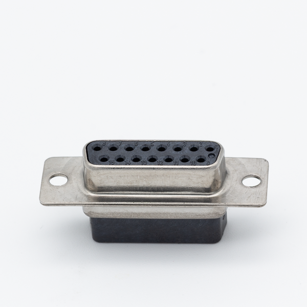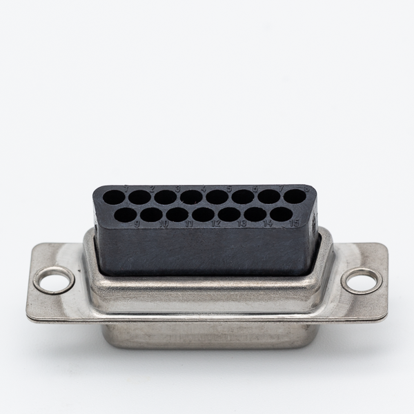Sub-D-Buchse, weiblich, 15-polig, Hochvakuum.